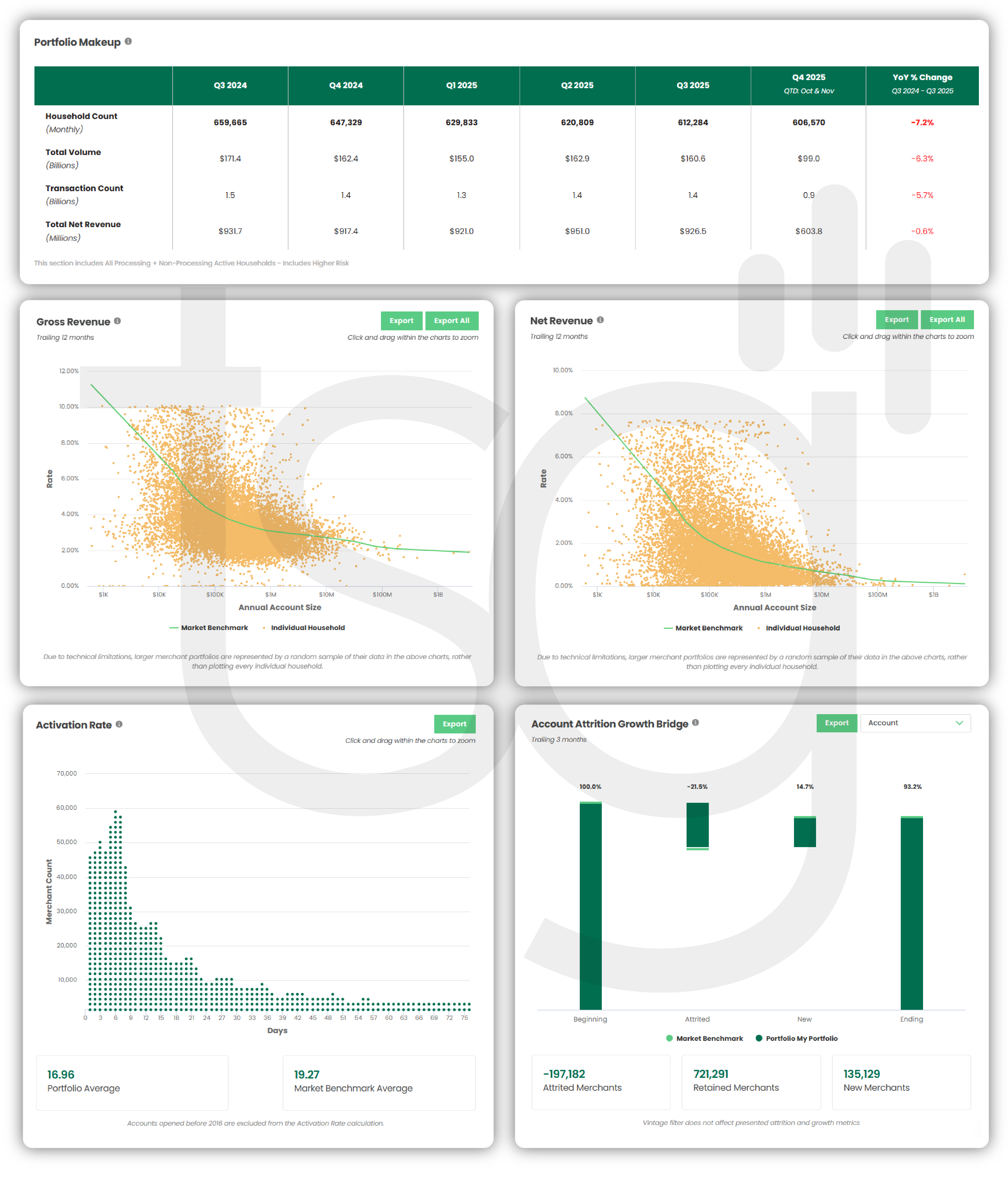 Used by organizations representing more than 75% of U.S. payment volume and covering four million merchants across 250+ industries, AIM is the industry’s trusted source for benchmarking price, profitability, growth, and attrition. The new Executive Dashboard builds on this foundation by delivering streamlined, executive‑ready intelligence from the moment users log in.